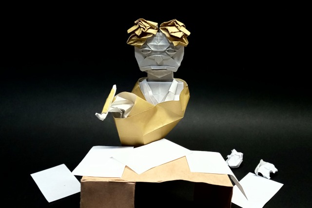 -(39 KB)槍は省略しましたが、L.C.Lと目は折りだすことが出来たので良かったです。12等分から。