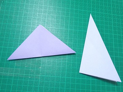 植木鉢で1枚、水が出てるじょうろで1枚、黒い折り紙(スタンド)で1枚です。全部不切正方です